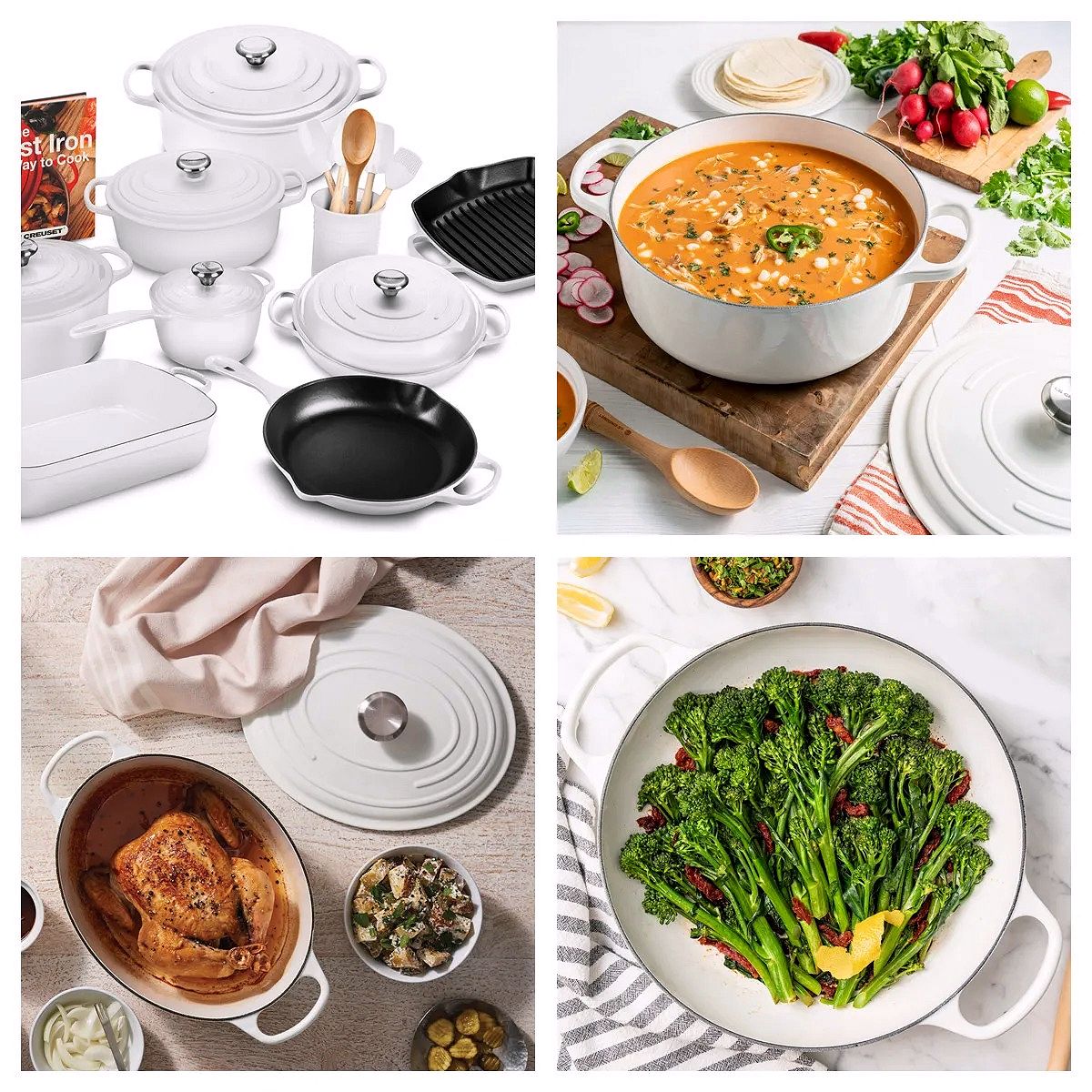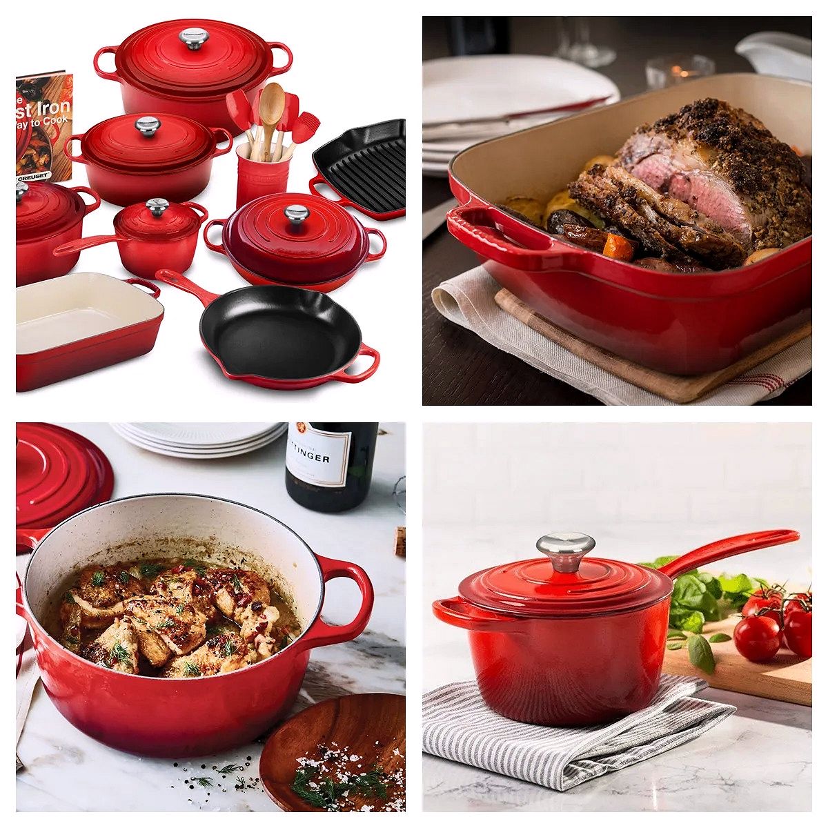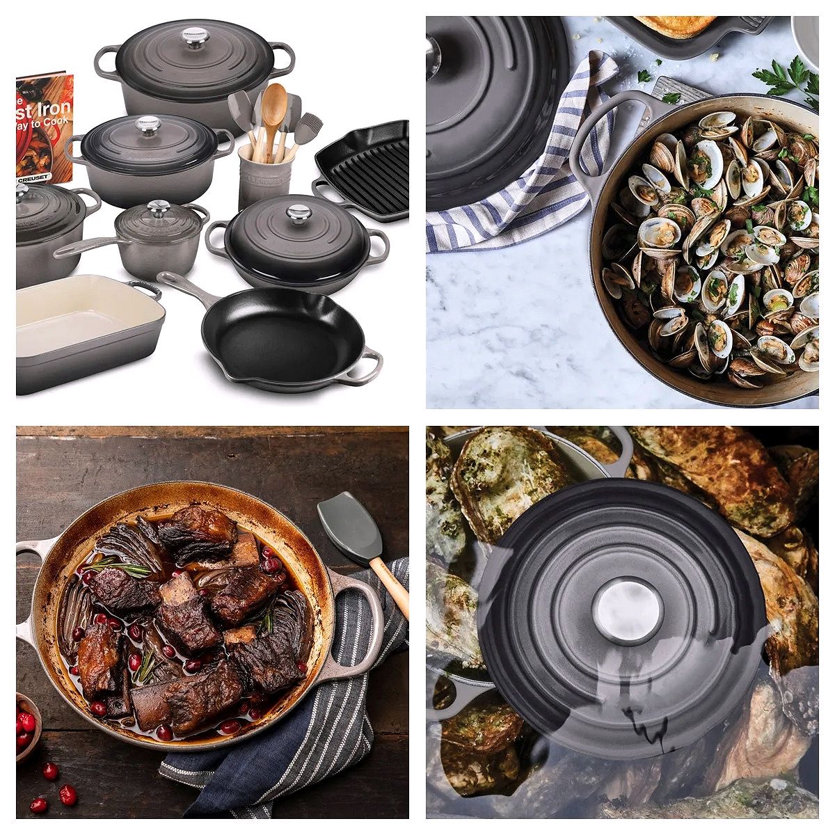 ??Enhanced handles are 45% larger, distributes the weight evenly and easier to grip when wearing oven mitts; Improved lids with built-in lid stabilizer seals in flavor and fits securely; stainless steel knobs are oven safe at any temperature