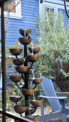 The Bloomington fountain creates an elegant focal point for your garden, porch, or patio. This fountain is sure to grab your attention as the gentle flow of water cascades down 31 cups into the glass bead-filled basin below. Constructed from steel with a rust resistant copper colored painted finish, the Bloomington Fountain will last for years to come. Some assembly required.