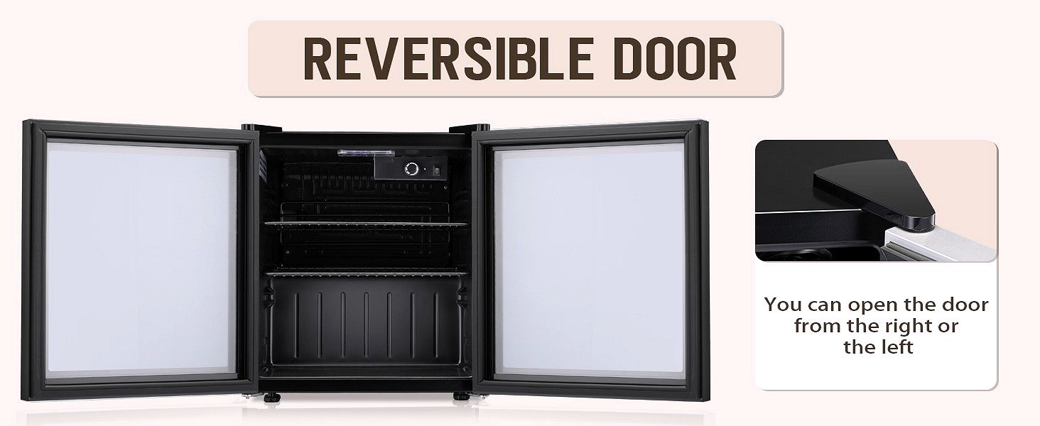 - DOUBLE GLASS DOOR-Double-pane tempered glass door and air tight seal ensures maximum insulation. which could keep the heat away.Clear double paned glass door make it easy to see what drinks are being chilled.