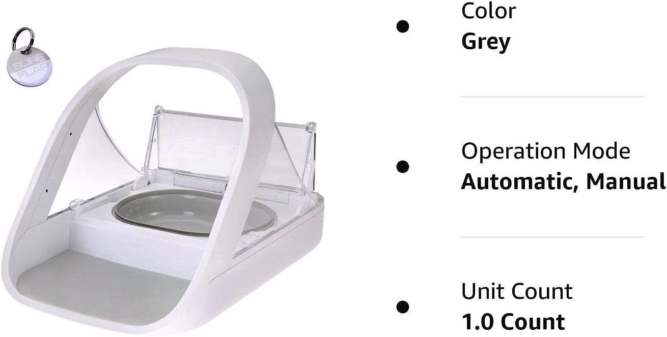 • Automatic Feeding: The Sureflap feeder dispenses food automatically when your pet is ready to eat.