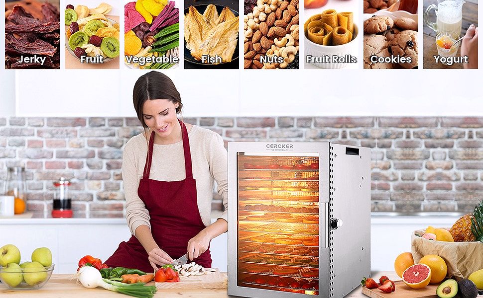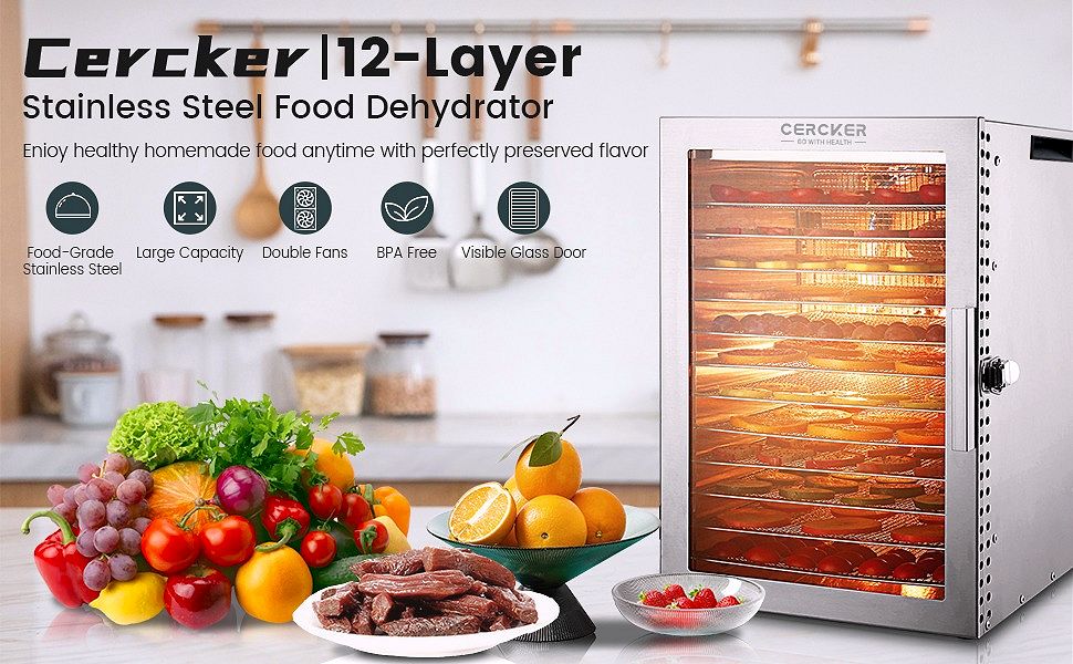 2026 NewCercker Food-Dehydrator Machine with 12 Stainless Steel Trays