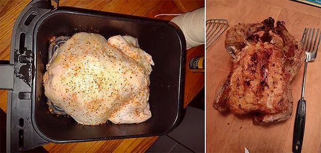 I have owned 2 other air fryers, both manual operation because of the loud beeps that digital ones have made. But this one is different, the only time it beeps with when you really need it to beep, mainly when the timer is done. I was afraid of a long learning curve, but it is actually very easy to operate, whether using one or both baskets. The inserts in the bottom of the baskets are tight enough that they don't fall out when draining the grease, yet not too hard to pull out to wash. I was skeptical about one basket fitting a whole chicken, but it did fit my 4/5 lb chicken, the only problem I had was turning it halfway through, I needed help. I think I will invest in a large pair of tongs for this task. I have made several other dishes like bacon (nice and crispy), chicken thighs, french fries, baked potatoes, chicken breasts and steak. Everything turned out crispy and delicious. I am glad that I only need this air fryer now instead of the other two, especially since this takes up quite a bit of counter space, the only downside I could find to this great air fryer.