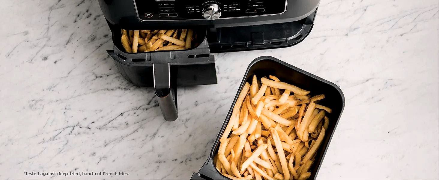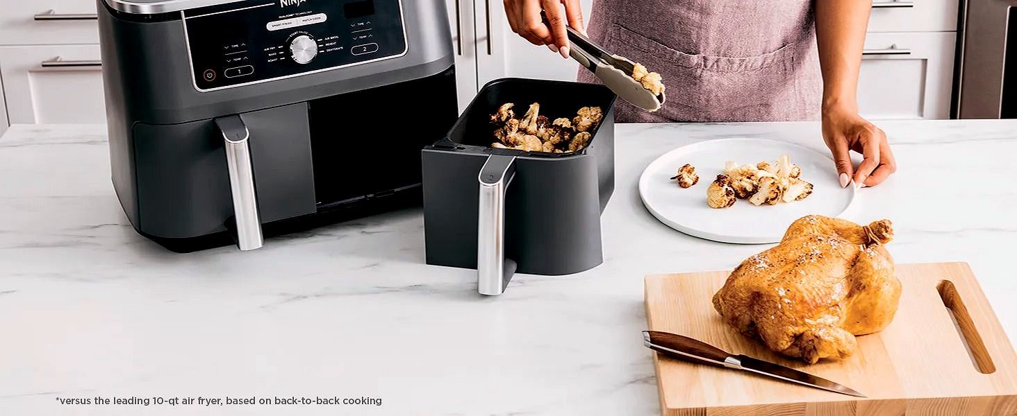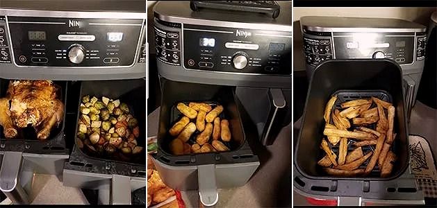 I can't believe I ever got by without Ninja in my life. First, I can roast a chicken in under an hour that is better than any rotisserie chicken you can buy. I rub a little olive oil on my roasting hen and season, put it in my air fryer on roast at 350 and miracles happen. I love that I can be making 2 different things at once and I can using Smart Finish have them get done at the same time. Foods are done quicker and nothing is greasy, this is healthier eating and everything seems to taste better too. Cleanup is a breeze, I use a damp sponge and haven't needed to soak or scrub yet. Another awesome feature, cool down at the end of the cooking cycle, I can even adjust the timer down to 0 to get the fryer to cycle down. You can use baskets separately or together to fry, bake, roast, reheat foods, dehydrate or even air broil. The match cook function means you can put the same thing in both baskets to double your capacity to make just about anything. As if all these features aren't enough, you can find so many recipe ideas online tailored to Ninja Foodi products, I have loved most that I tried. This air fryer is more than a time saver, it keeps my kitchen so much cooler and has really allowed me to be creative and made it possible to make meals in a pinch.