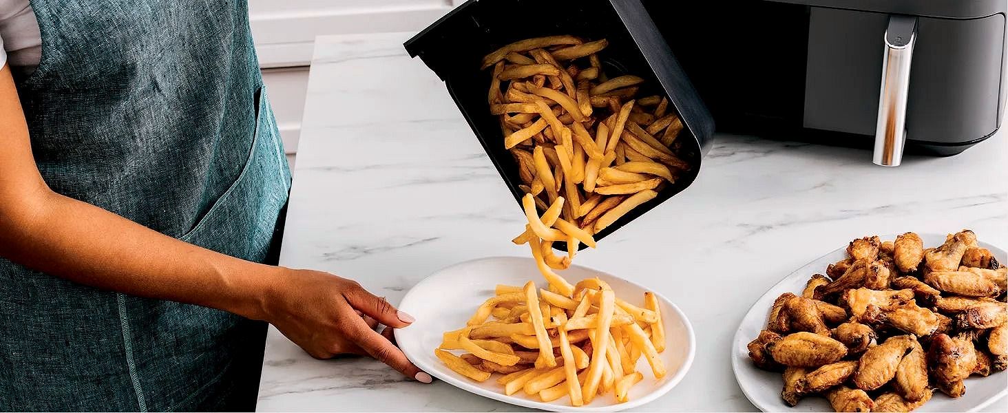 SEPARATE HEATING ZONES:2 independent XL 5-qt. zones have their own cooking baskets, cyclonic fans, and rapid heaters.