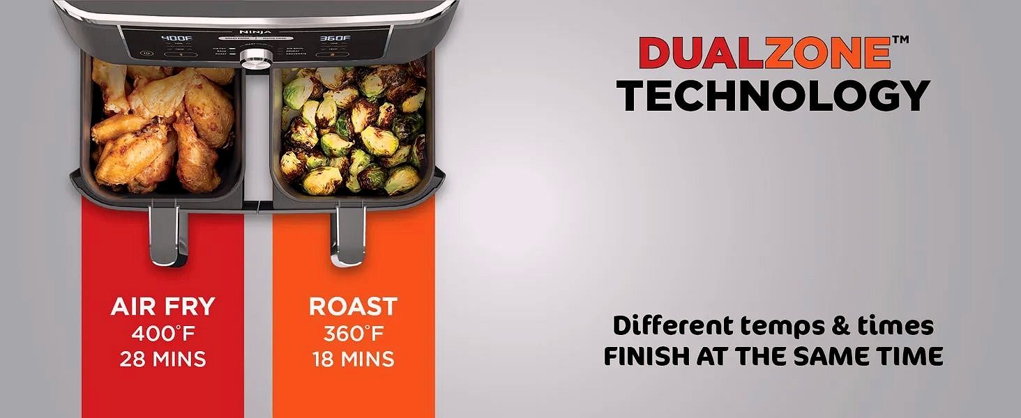 SMART FINISH & MATCH COOK:DualZone Technology allows you to choose between the Smart Finish feature, which unlocks cooking 2 foods 2 ways that finish at the same time, and the Match Cook feature, which easily copies settings across zones for full 10-qt. capacity meals.