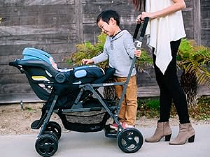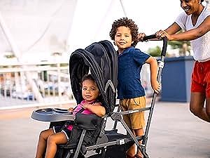 - REAR BENCH AND STANDING PLATFORM so the tandem stroller gives your big kid the freedom they deserve. Kids can sit. stand. or stroll whenever the mood takes them