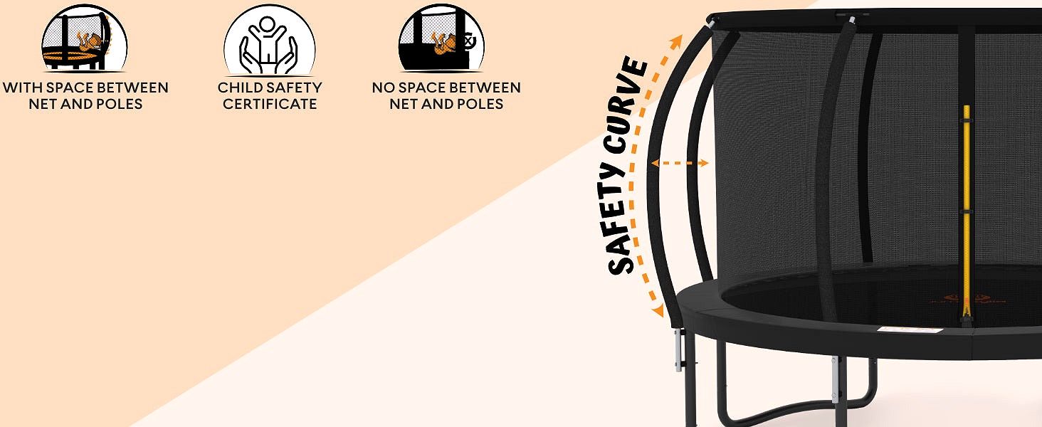 - Your kid's fun and safety - Our Responsibility! For your family's safety we innovated our trampolines for kids and adults with next gen curved poles designed to protect your children from accidents or injury. Jumpzylla trampolines comply with ASTM F381-16 Standard Safety Specification. We never compromise on safety. or quality. our mission is to deliver a heavy duty trampoline for endless hours of fun with zero worries.