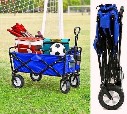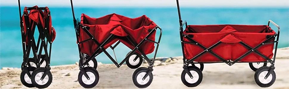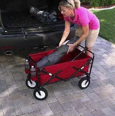 A perfect gift idea for camping lovers,beach-goers,parents, or those that are looking to haul stuff to and from sporting events, concerts, or just to the park, the foldable utility wagon lets you simply unfold it, fill it up, an go on with your adventure. To fold it back up just pull up on the tab in the center of the wagon and load it into your car.