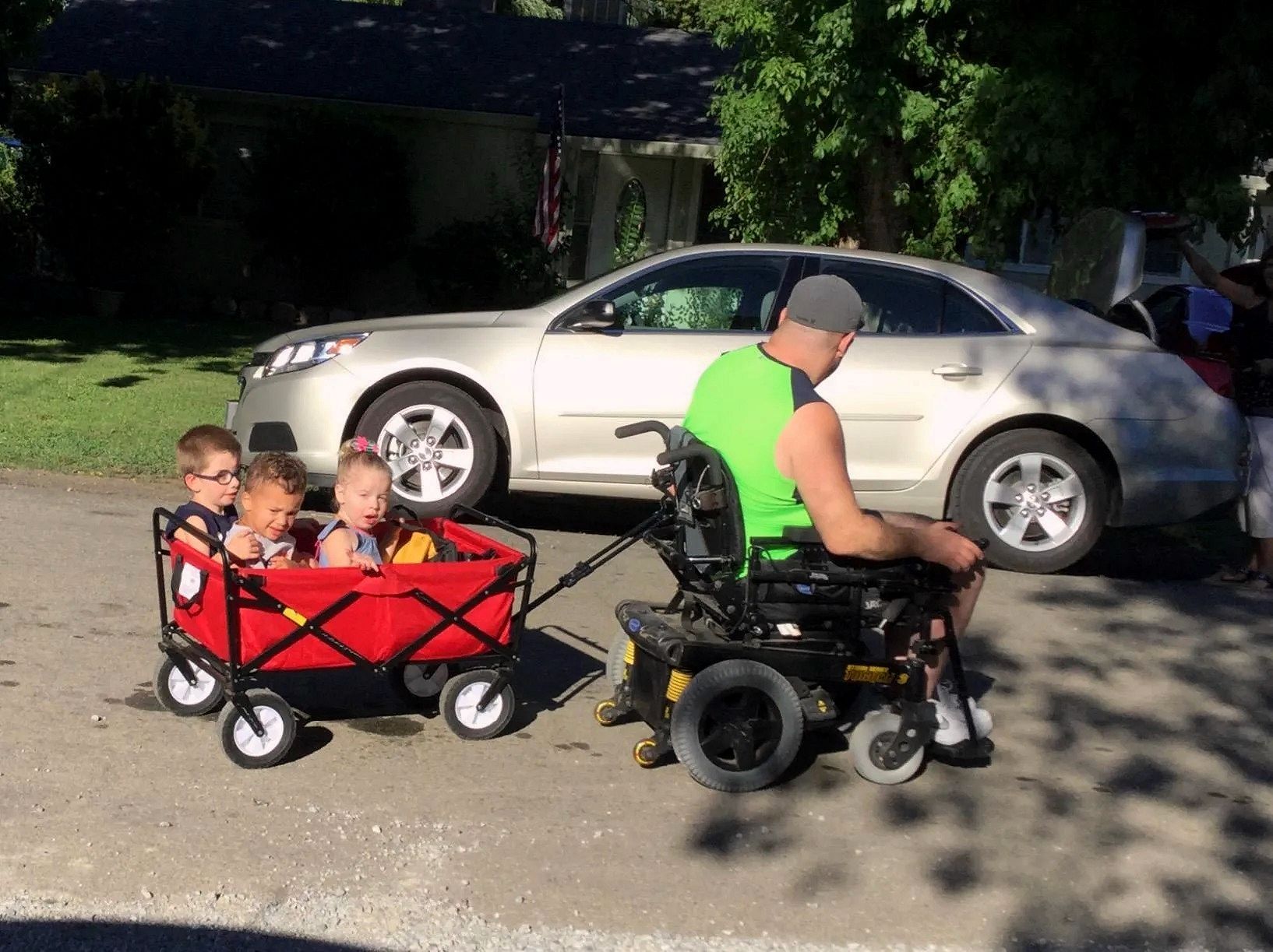 I have an 8 mo, 2 two yos, and a 4 yo. This wagon fold up so easily and fits in the back of my car. It holds a diaper bag, a bag of towels, a baby and a fold up chair and pulls easily to our destination. I was so thankful for it this summer! The bottom is cushioned enough to act as a bassinet for my napping 8 mo at the lake as well! Love it. - EM