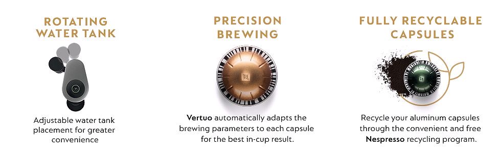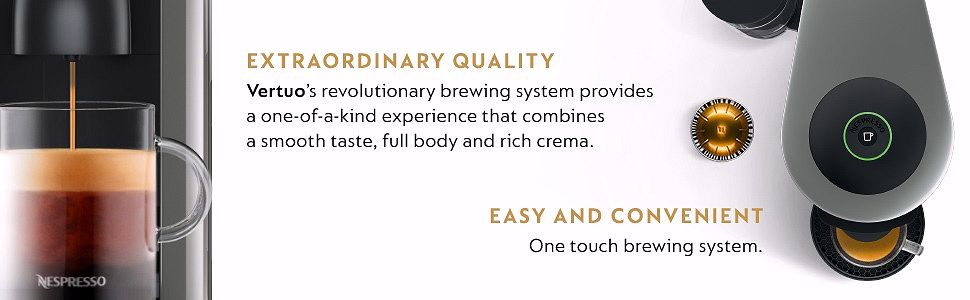 - SINGLE SERVE COFFEE MACHINE: Create barista grade brewed single serve Coffee or Espresso cups at the touch of a single button; Designed for use with Nespresso Vertuo capsules only