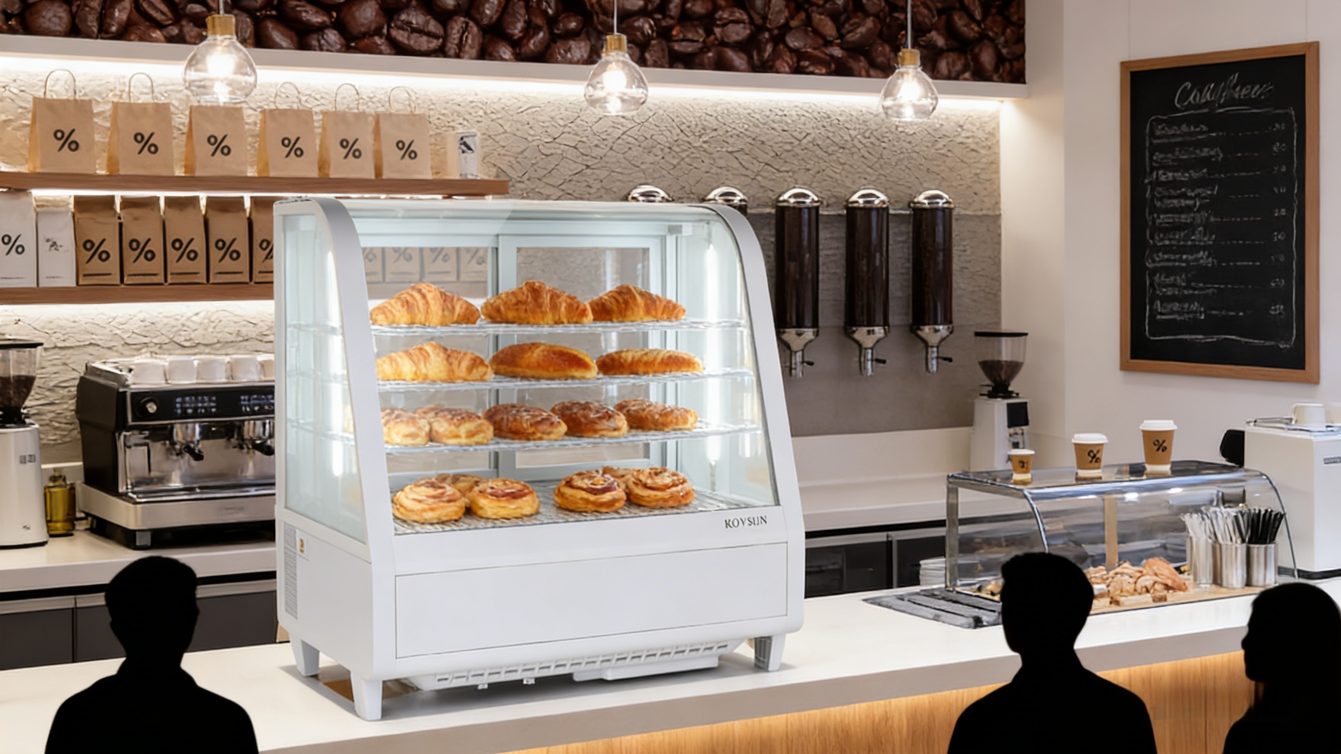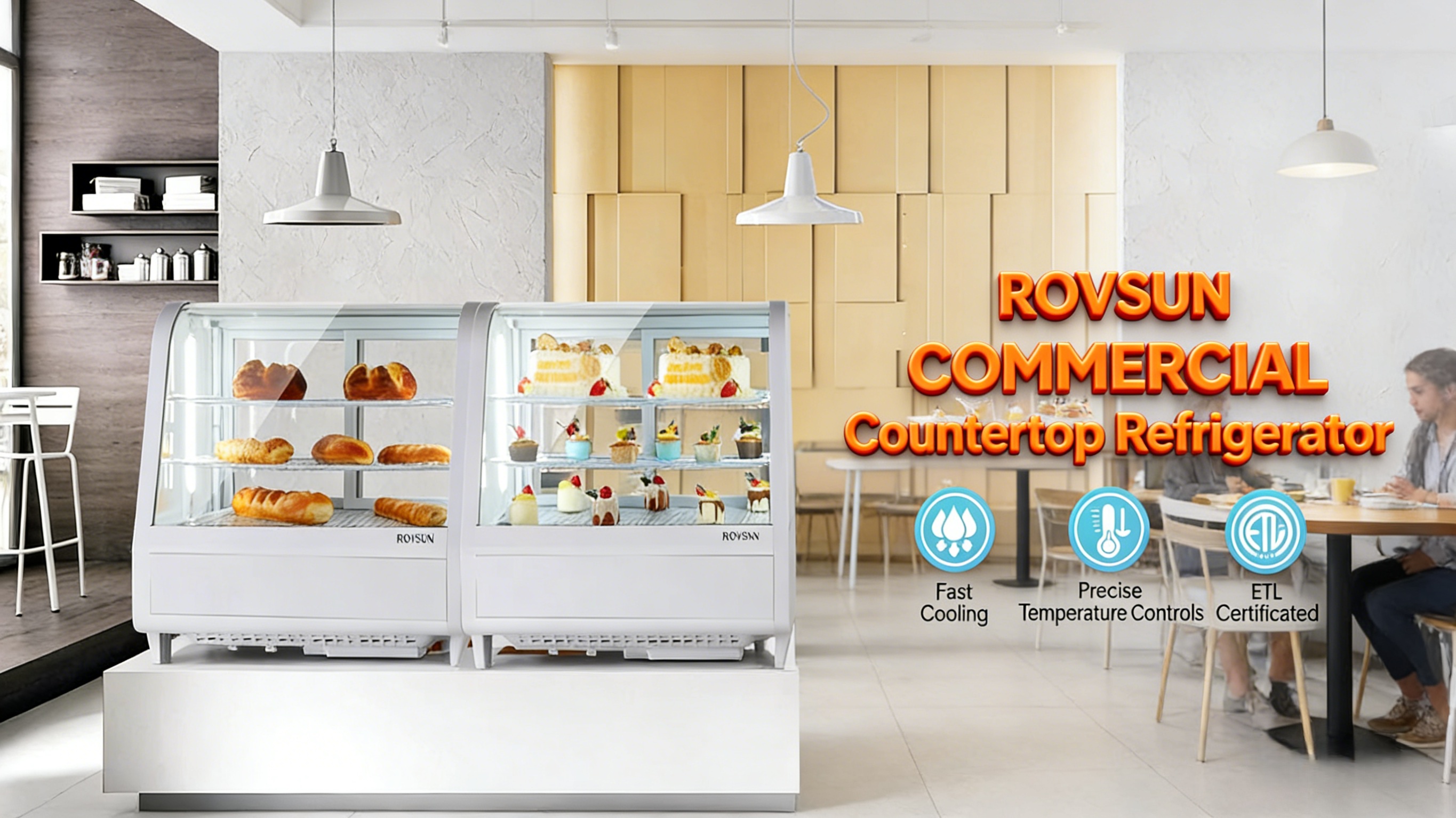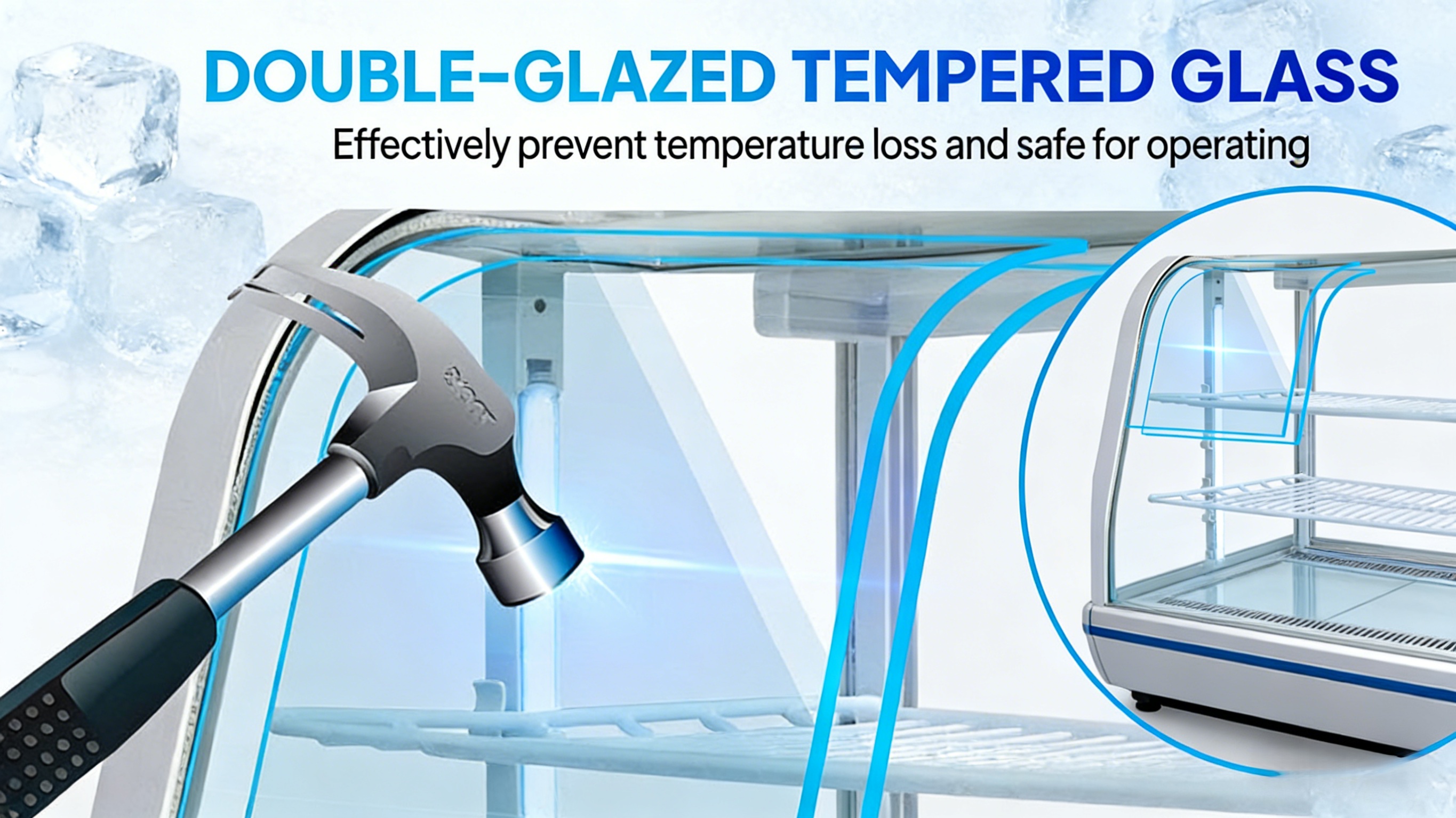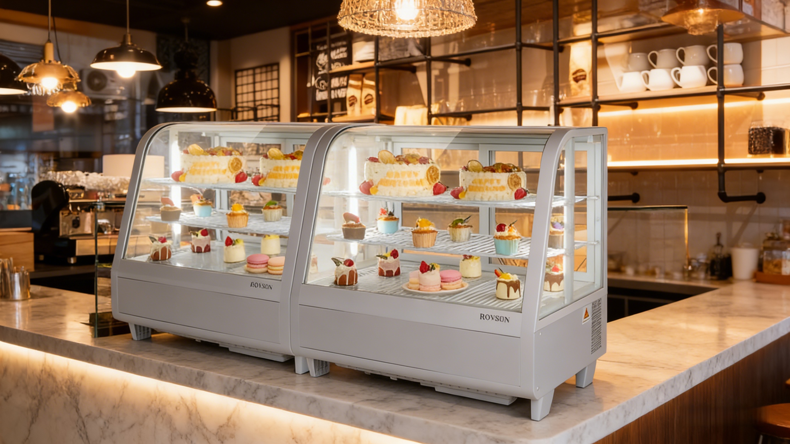 1. Fast Cooling & Automatic Defrost: Equipped with a powerful compressor, the bakery display case features fast cooling, energy conservation and low noise. Circulating cold air ensures uniform cooling, extending food preservation period. Auto-defrosting maintains clear visibility inside the display fridge.