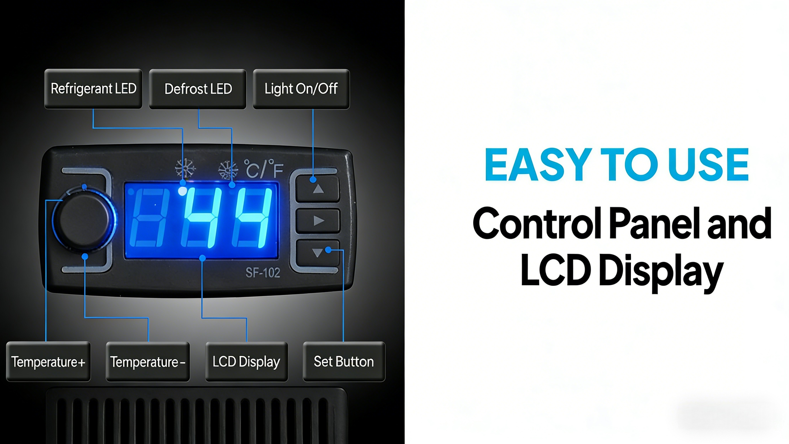 4. Accurate Control Panel: With the thermostatic temperature of 32 -53.6 ℉, you could choose the most suitable temperature for different foods you want to display. Temperature, LED lighting, manual defrost mode are controlled by a simple button, easy to use and operate.